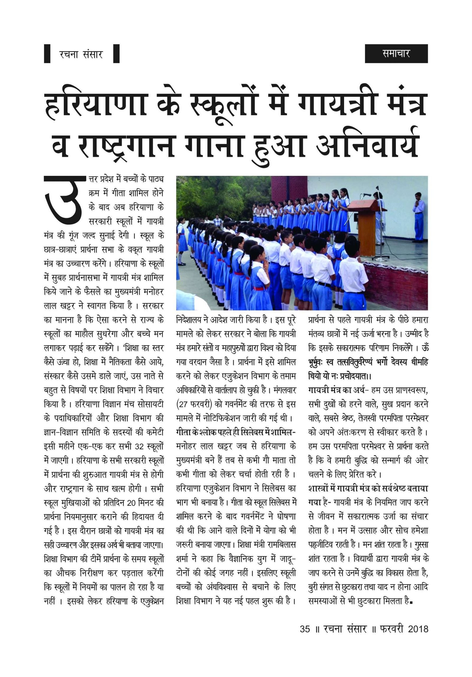 RACHNA SANSAR, FEBRUARY 2018